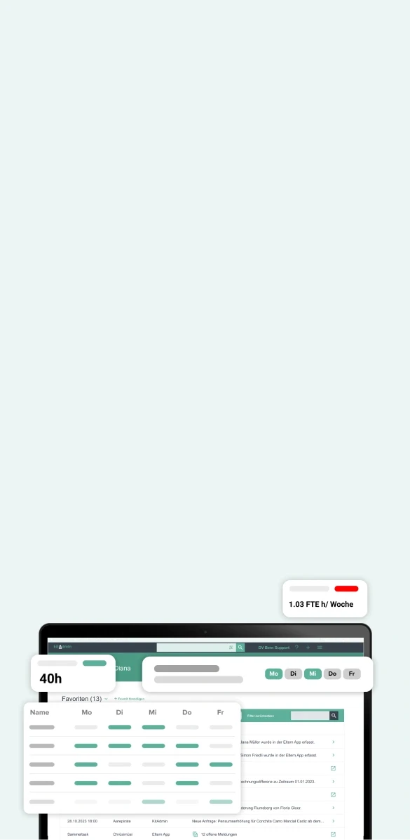 Reagiere im Alltag flexibel auf Veränderungen und stelle sicher, dass immer genug Personal zur richtigen Zeit am richtigen Ort ist. Mit diesem Modul wird die Personalplanung in deiner Kita zum Kinderspiel.